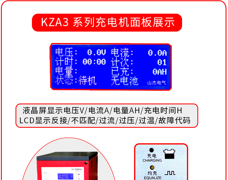 ? KZA3充電機具備電池未接,反接,欠壓,過壓,過溫,充足,及故障狀態(tài)自動檢測顯示保護