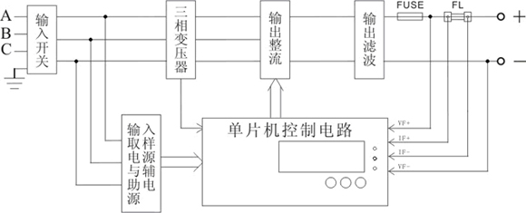 1,交流輸入電源通過輸入開關(guān)加在工頻變壓器初級(jí),通過變壓器電磁耦合,將輸入高壓變成適合蓄電池充電的電壓等級(jí),該電壓經(jīng)橋式半控整流橋變成脈動(dòng)直流電壓。